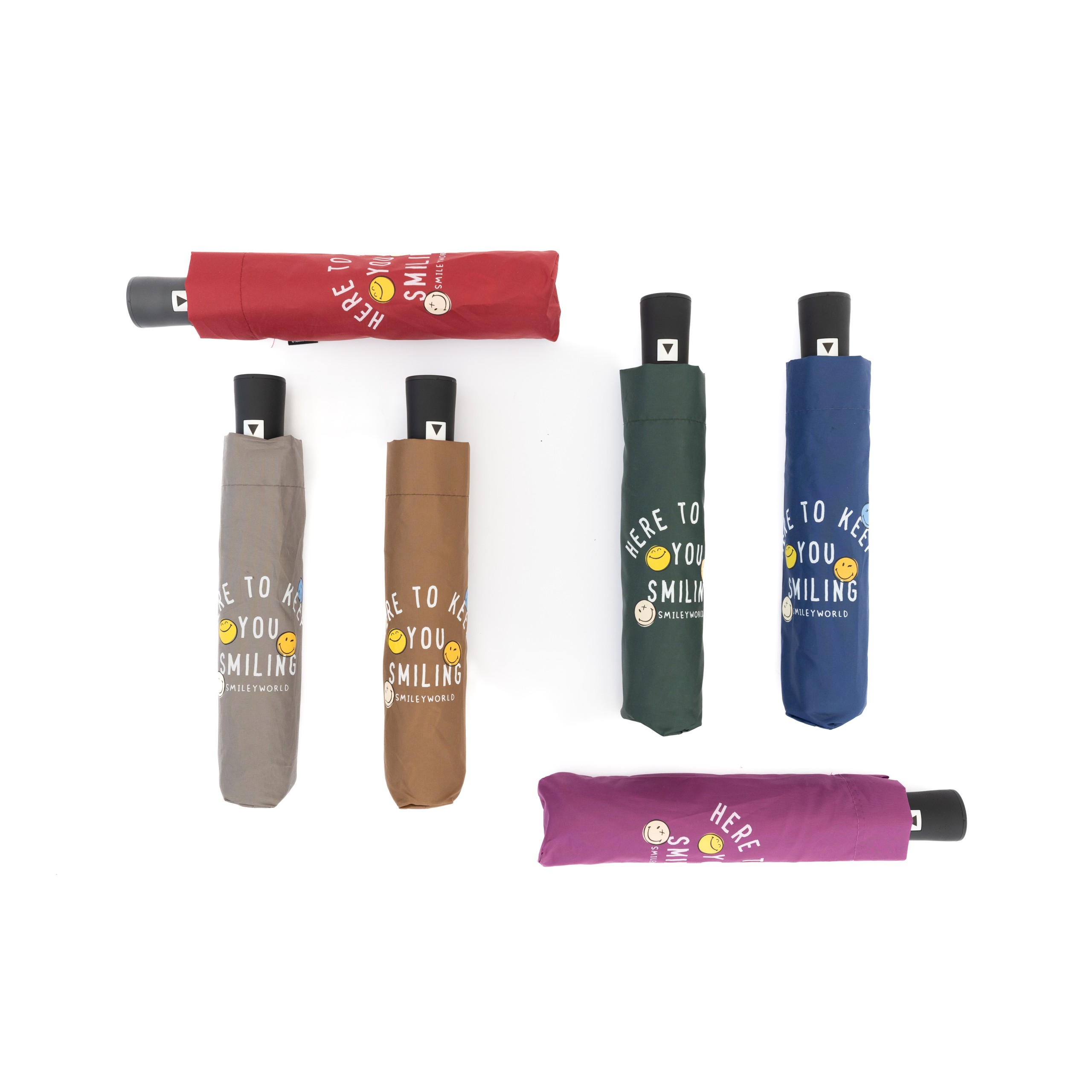 SMILEY WORLD SuperMini ΑΥΤΟΜΑΤΗ ΑΝΤΙΑΝΕΜΙΚΗ μέγεθος 55 εκ με 8 μαύρες ακτ + fiberglass, μαύρος σκελετός Πλαστική Λαβή Υφασμα PONGEE με SMILEY λογοτυπο σε 6 χρώματα